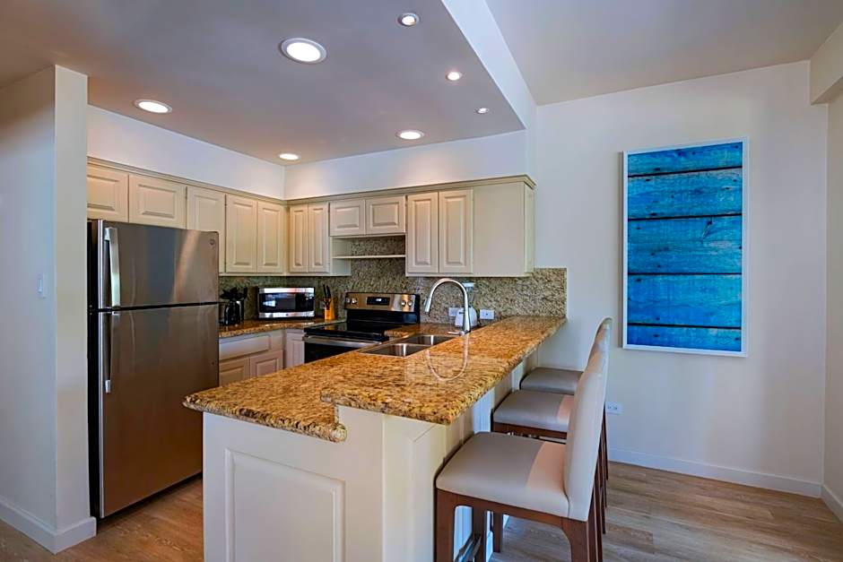 The spacious suite has 1 bedroom and 1 bathroom with a bath and free toiletries. The well-fitted kitchen features a stovetop, a refrigerator, kitchenware and an oven. The air-conditioned suite offers a TV with cable channels, soundproof walls, a tea and coffee maker, a seating area as well as pool views. The unit has 2 beds.