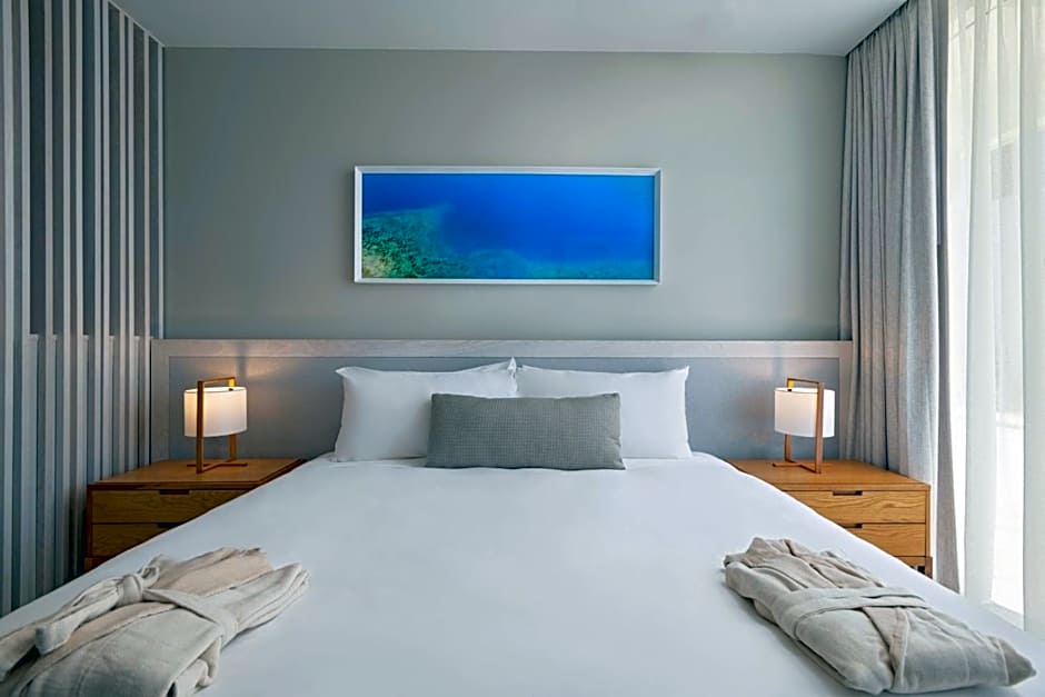 The spacious suite has 1 bedroom and 1 bathroom with a bath and free toiletries. In the fully equipped kitchen, guests will find a stovetop, a refrigerator, kitchenware and an oven. The air-conditioned suite features a TV with cable channels, soundproof walls, a tea and coffee maker, a seating area as well as sea views. The unit has 1 bed.